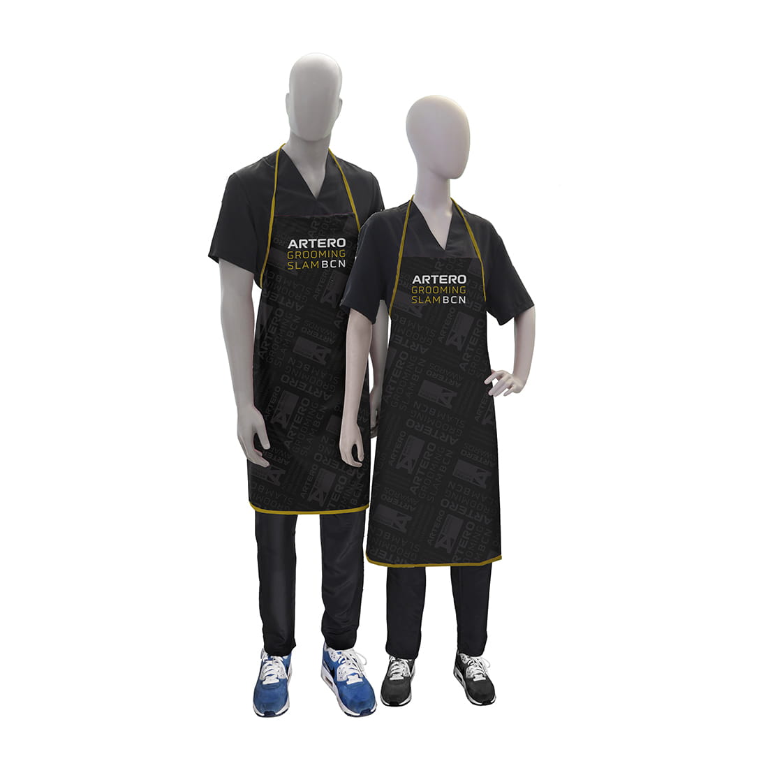 Regulowany pasek na szyję i w talii umożliwia idealne dopasowanie, a elegancki czarny kolor z nadrukiem logo Artero Grooming Slam podkreśla wysoką jakość i renomę marki.