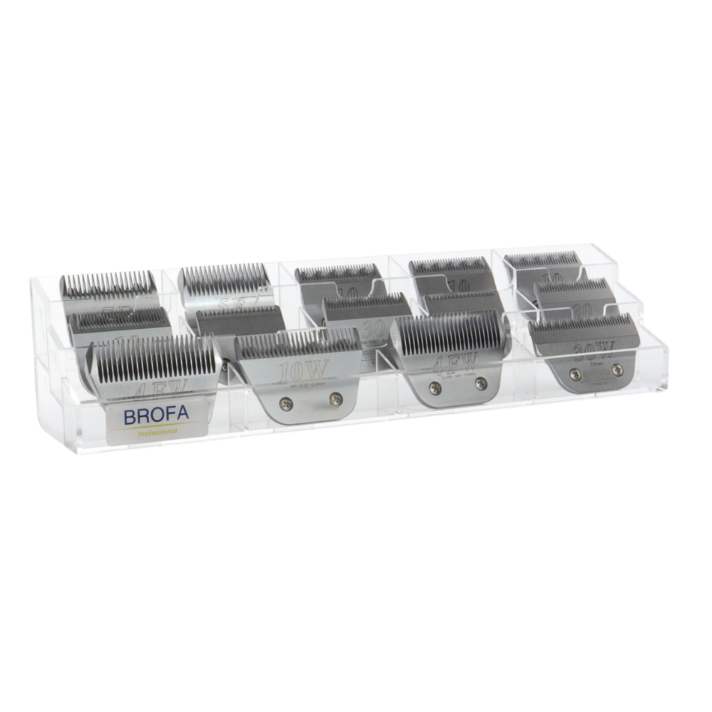 Organizer Brofa to doskonały wybór dla groomerów, którzy chcą zadbać o swoje narzędzia i pracować w uporządkowanej przestrzeni. Dzięki niemu wszystkie ostrza do maszynek są zawsze pod ręką – bez względu na to, czy używasz ich do strzyżenia psów, kotów czy innych zwierząt.