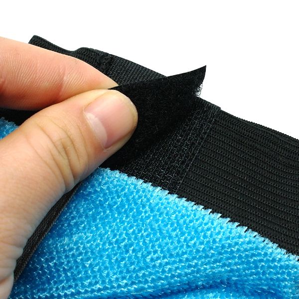 Rękawica posiada rzep, aby przypiąć rękawicę oraz gumową taśmę, aby lepiej dopasowywała się do dłoni.