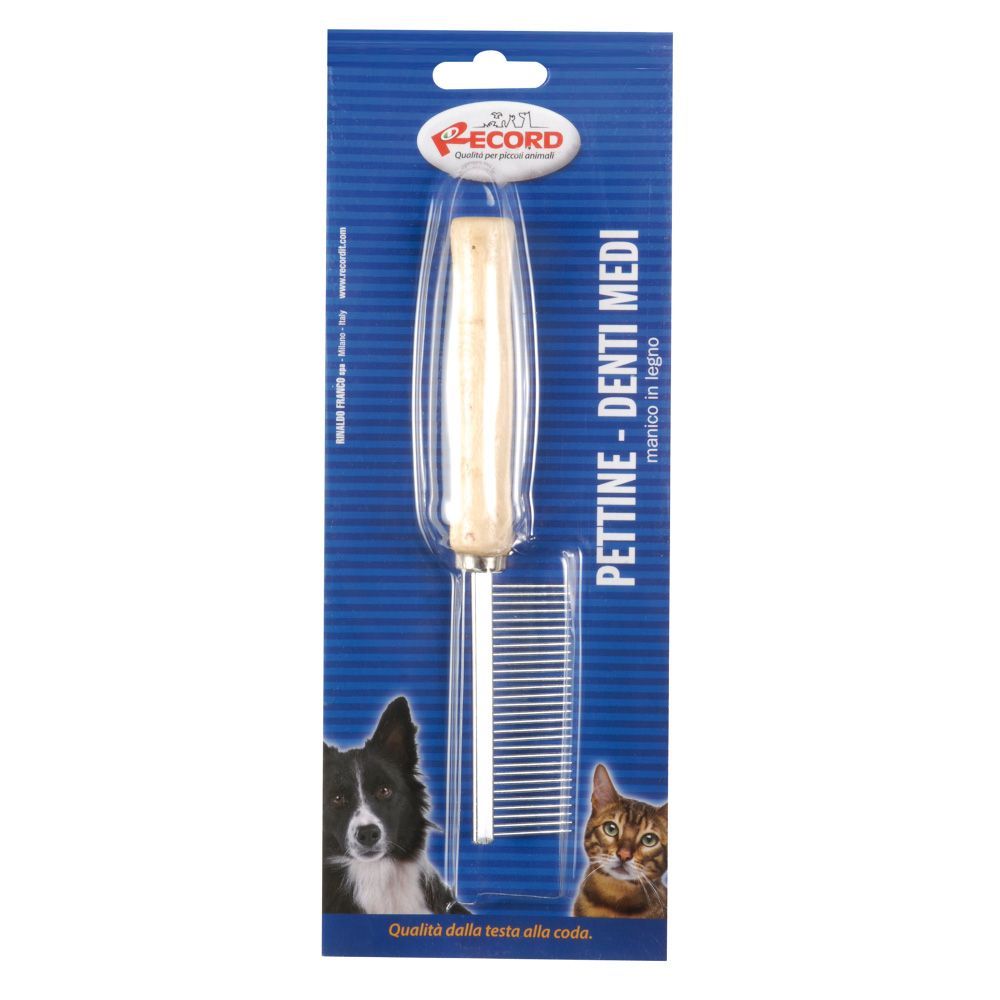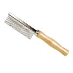 Grzebień firmy Record z drewnianą rączką przeznaczony do pielęgnacji sierści u psów.