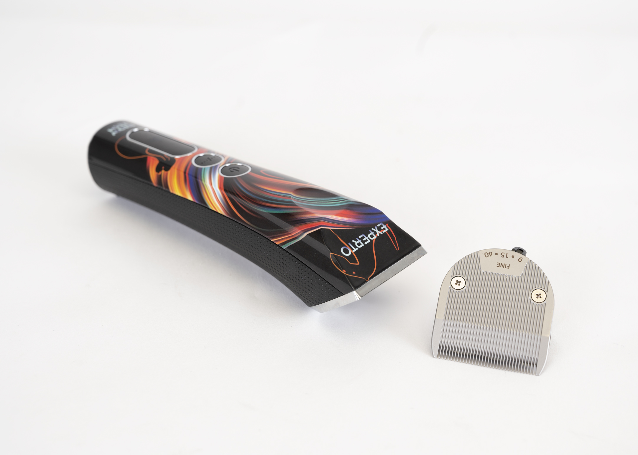 Dzięki ergonomicznej i wygodnej konstrukcji, niewielkiej wadze i obrotowemu silnikowi, maszynka Experto jest łatwa w obsłudze i przyjemna w użytkowaniu. Model tej maszynki posiada aż 5 biegów, dzięki czemu możesz dostosować prędkość strzyżenia do swoich potrzeb. Czytelny wyświetlacz LCD pokaże Ci, na którym biegu pracujesz, a także ile pozostało baterii i poinformuje Cię o konieczności wyczyszczenia ostrza. Maszynka Experto została wyposażona w regulowane ostrze ze stali nierdzewnej (dolna część) i ceramiczny wkład (górna część) pokryty powłoką tytanową, dzięki czemu ostrze jest niezwykle ostre i zapewnia precyzję cięcia. Ceramika gwarantuje niski transfer ciepła i mniejsze tarcie, umożliwiając dłuższe i szybsze strzyżenie, jednocześnie zmniejszając ryzyko oparzeń maszynką i zapobiegając podrażnieniom. Załączone ostrze świetnie sprawdzi się do szaty z sierścią cienką i średniej grubości. Będzie idealnym sprzymierzeńcem do prac przy detalach. Maszynka ta zapewnia pracę nawet do 5 godzin! W przypadku rozładowania, wystarczy podłączyć kabel i można pracować dalej. Nowoczesny design Experto z pewnością przypadnie każdemu do gustu.