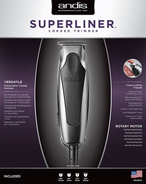 Jednobiegowa maszynka SuperLiner Andis to przewodowy trymer idealny do strzyżenia brody, wąsów, karku.