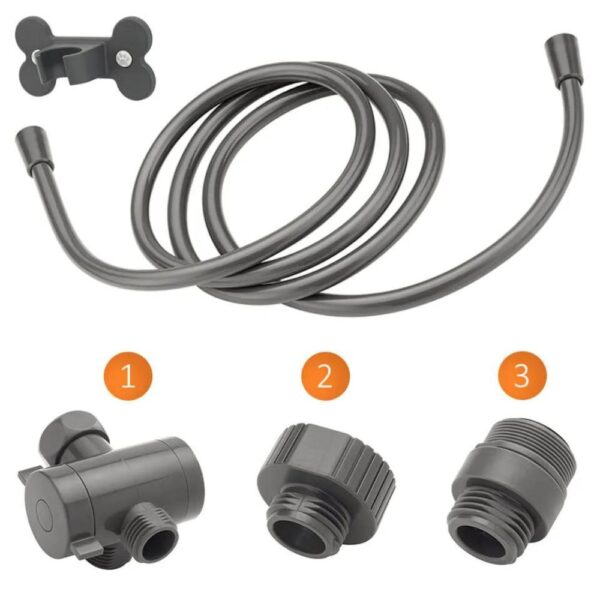 Dołączony 245cm wąż zapewnia dużą elastyczność. Bez problemu dosięgniesz wszędzie bez potrzeby przesuwania zwierzaka. Wszechstronne przejściówki w zestawie. Dołączone adaptery umożliwiają kąpanie zwierzaka pod prysznicem, w umywalce lub w ogrodzie.