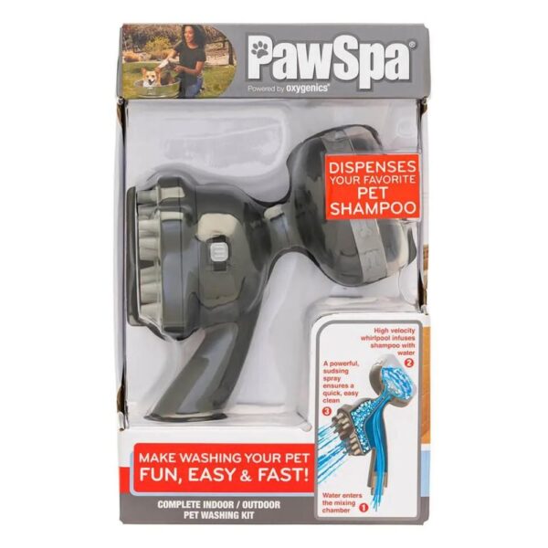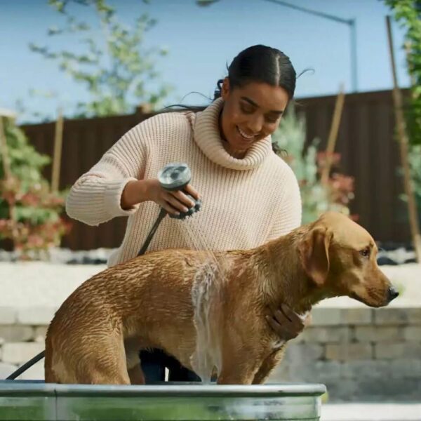 Słuchawka Oxygenics PawSpa sprawia, że mycie pupila staje się proste i przyjemne. Możesz wprowadzić do dozownika ulubiony szampon i obsługiwać słuchawkę jedną ręką.
