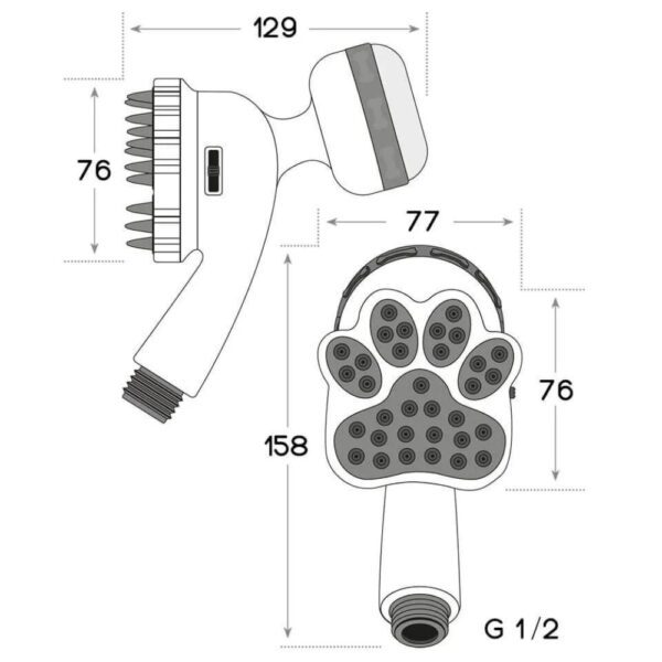 Szeroki strumień deszczowy – silny strumień, który pomoże Ci szybko i wygodnie spłukać zwierzaka. Umożliwia czyszczenie nawet długiej i gęstej sierści.