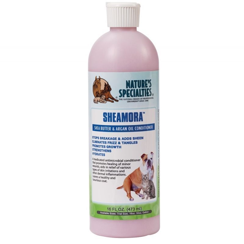 3. Odżywka Sheamora Natures Specialties z masłem Shea oraz olejkiem arganowym. Pozostawia zdrową, lśniącą i nie tłustą sierść, eliminuje kołtuny, nawilża i stymuluje wzrost włosa. Koncentrat 1:8