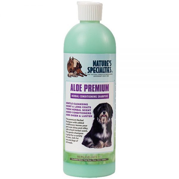 1. Szampon Aloe Premium firmy Natures Specialties przeznaczony dla psów o długiej sierści. Szampon głęboko oczyszczający idealny do pierwszego mycia, pozostawia sierść lśniącą i jedwabistą. Koncentrat 1:16