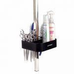 Przybornik na sprzęty do zamocowania na wysięgniku groomerskim za pomocą śruby mocującej.