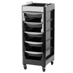 Pomocnik fryzjerski to praktyczne i funkcjonalne rozwiązanie, które ułatwi organizację pracy w Twoim salonie. Wyposażony w 5 pojemnych szuflad oraz dodatkową półkę, zapewnia dużo miejsca na przechowywanie narzędzi, akcesoriów pomagając utrzymać porządek i mieć wszystko pod ręką.