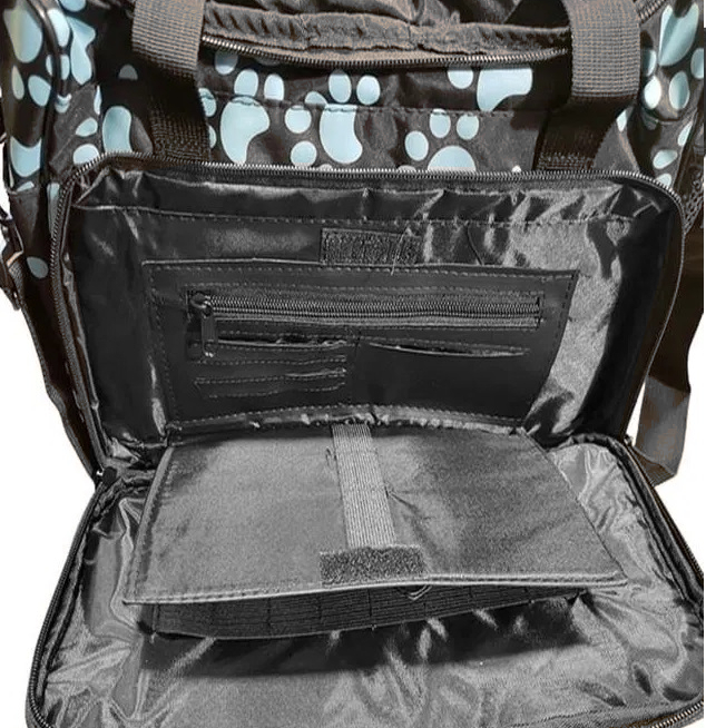Wahl Professional Tote Bag Paw Print to funkcjonalna torba na akcesoria groomerskie, idealna dla profesjonalistów oraz właścicieli zwierząt domowych, którzy często podróżują ze swoimi pupilami, np. na wystawy, targi czy wakacje. Torba oferuje dużą przestrzeń do przechowywania, składającą się z jednej obszernej komory głównej oraz wielu kieszeni zarówno wewnątrz, jak i na zewnątrz.