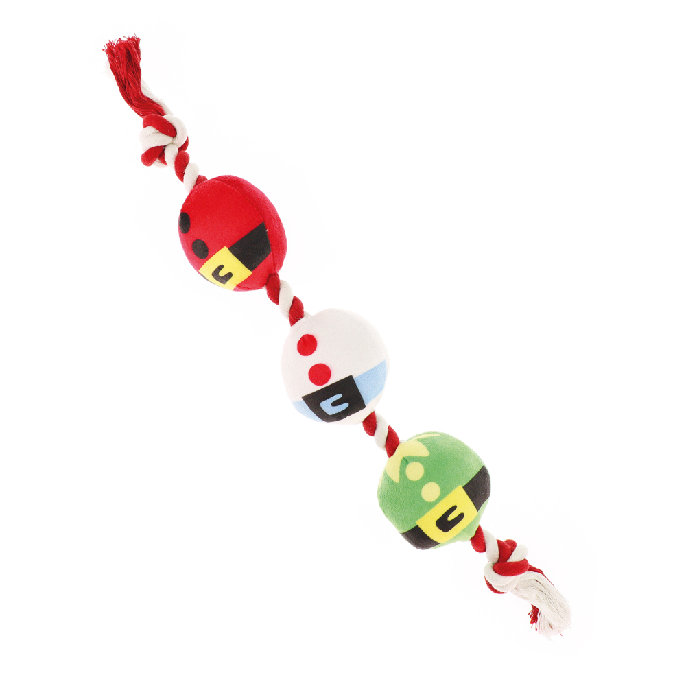 Kolorowa pluszowa zabawka dla psów, która zapewni świetną rozrywkę podczas świąt. Każda kulka wyposażona jest w piszczałkę, która dodatkowo stymuluje zainteresowanie psa zabawką.