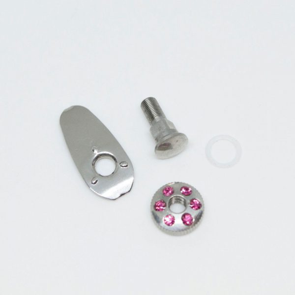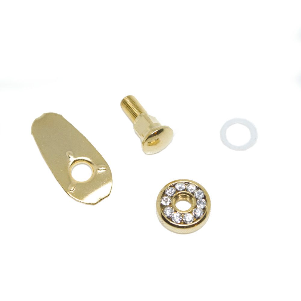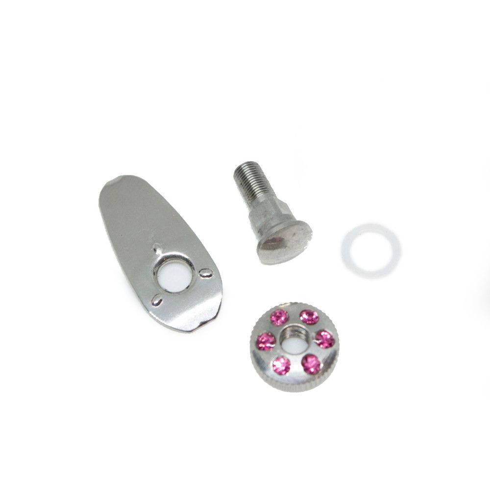 Zestaw zawiera blaszkę, podkładkę, śrubkę i ozdobne cyrkoniami pokrętło.
